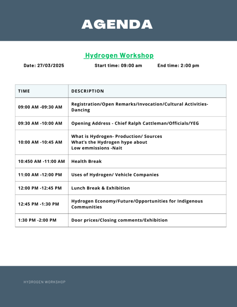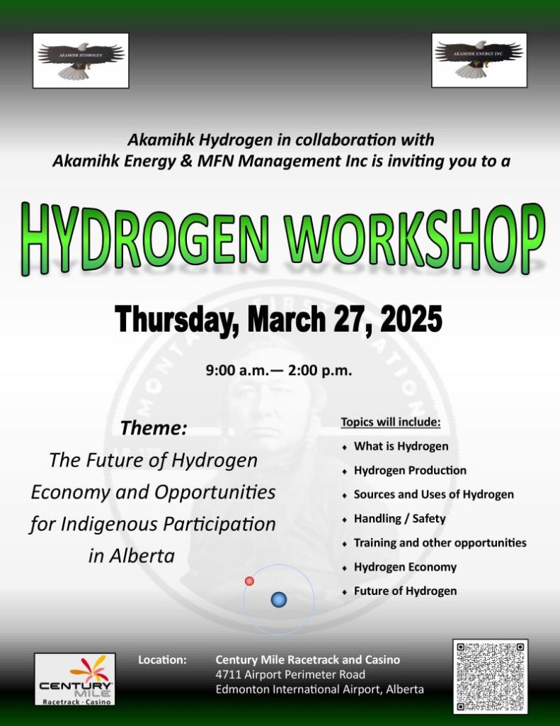 As nations develop the next generation of renewable and sustainable fuels and energy, Montana First Nation, through Akamihk Hydrogen, is working to provide services and solutions. Akamihk Hydrogen is leading an initiative to provide awareness on hydrogen vehicle operation and maintenance to Indigenous communities in central Alberta. There will be upcoming workshops with partners such as Edmonton International Airport, Heartland Connection, Northern Alberta Institute of Technology (NAIT), Red Deer Polytechnic.